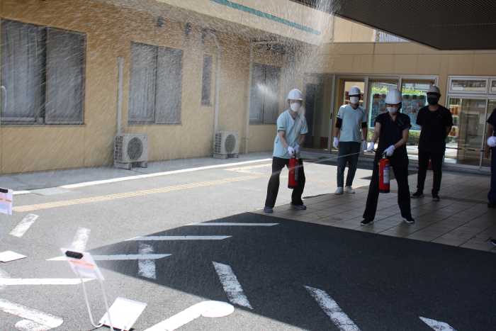 訓練用消火器を利用し火災を模した消火訓練も行われました。