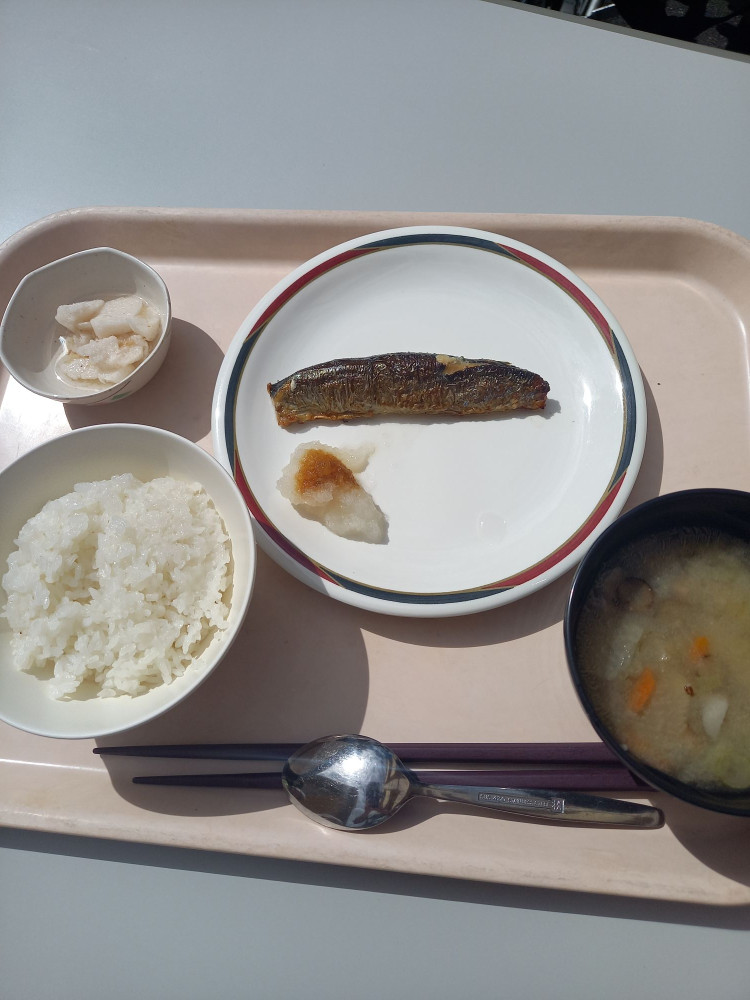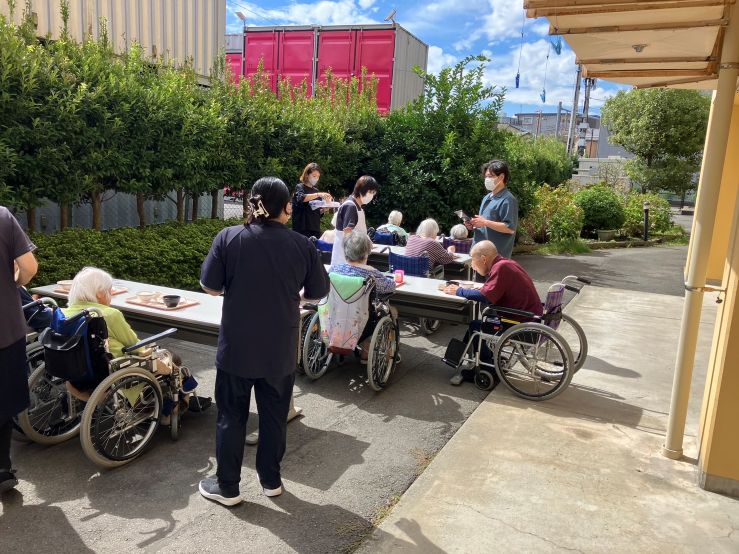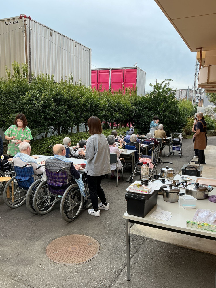 中庭にて行いました。秋刀魚を炭火焼で焼いた香ばしい