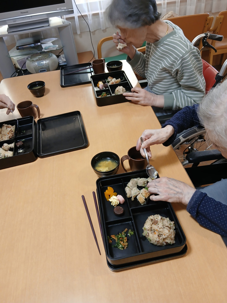 水ユニットにて昼食中華レクレーションを行いました。ご利用者様が手作りの餃子が食べたいというリクエストがありました。当日のメニューです中華炊き込みご飯餃子春菊ナムルミカン缶チョコアイスカスタードクリーム添え玉ねぎ卵中華スープ春菊のナムルは生の春菊を使用してとても柔らかく香りもありました。